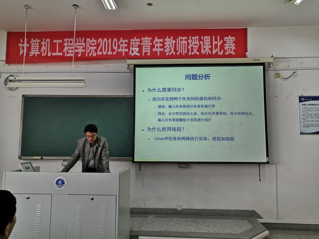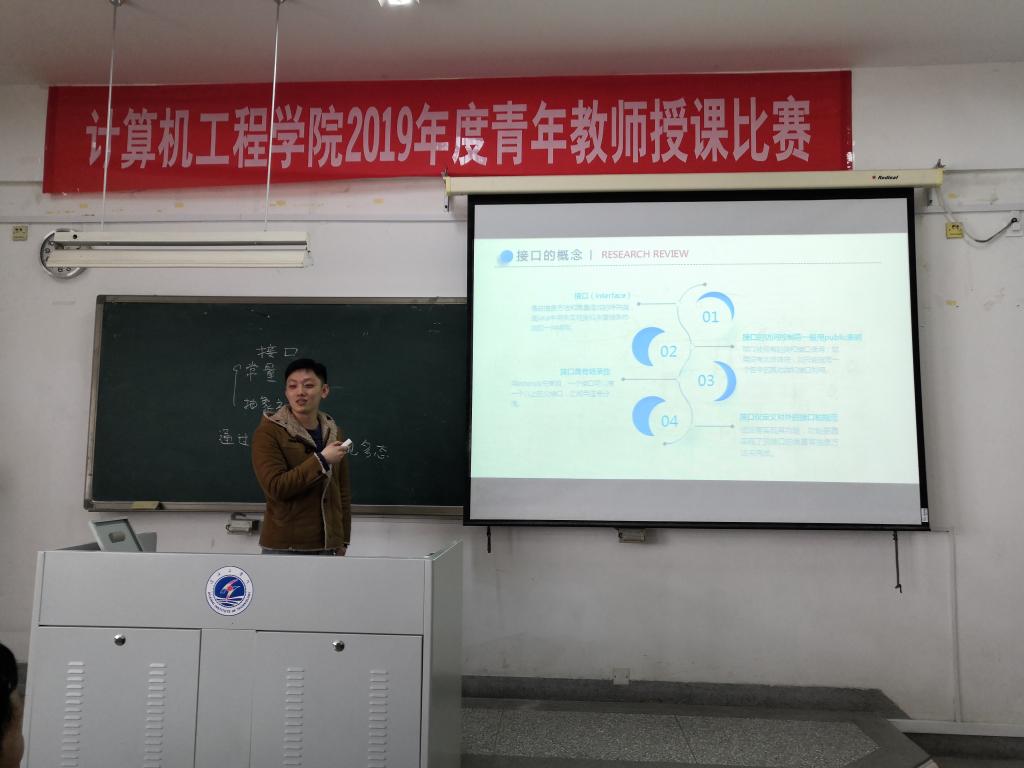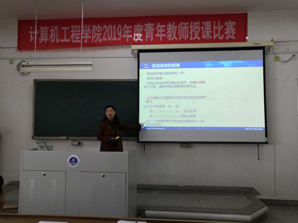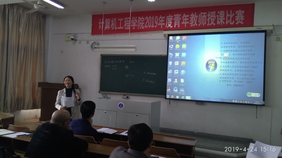 为进一步提高青年教师的业务素质和课堂教学水平,练好教学基本功,提升授课质量,加强教师间的交流和学习,促进教学方式及方法的改革, 2019年4月24日下午,计算机工程学院在文通楼205教室举办了2019年度“青年教师授课比赛”。